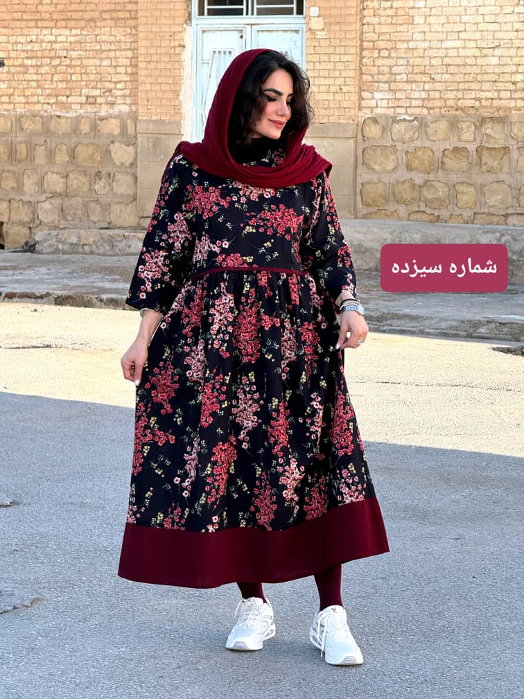 پیراهن زنانه مخمل کبریتی تکهدوزی شده | پیراهن کد ۱۴۳۹
