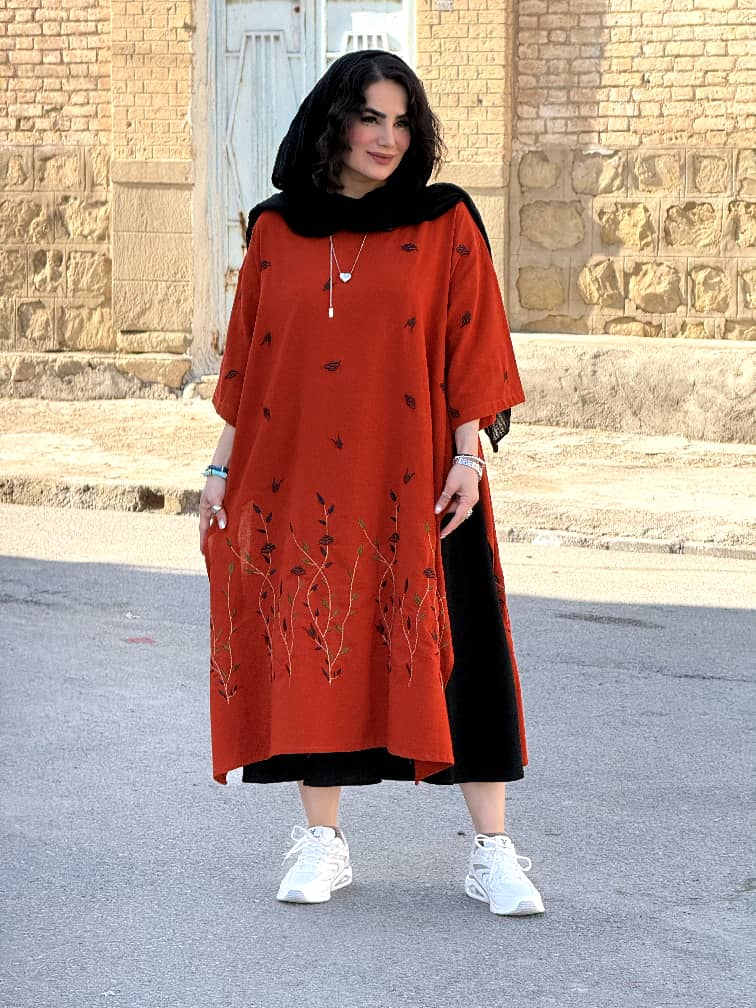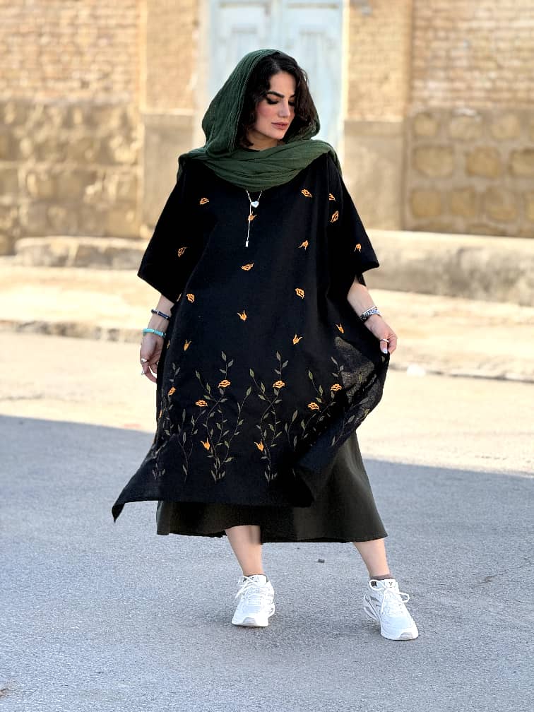 پانچو لینن گلدوزی‌شده بدون پلاستیک | پانچو کد ۱۴۴۰