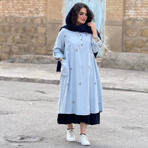 اما چیزی که این لباس را واقعا خاص میکند سه رنگ جذاب آبی، کرم و سرمهای است؛ رنگهایی که با حال و هوی پاییز و اوایل زمستان به خوبی هماهنگ میشود. رنگ آبی حس آرامش و لطافت را به استایل شما میدهد. رنگ کرم، گرمای دلنشینی به روزهای سرد پاییز میدهد و به زیبایی با اکسسوریهای طلایی ست میشود. رنگ سرمهای، رنگی اصیل و شیک محسوب میشود که برای استایلهای دانشگاهی و کافه گردی گزینهای بسیار عالی است.